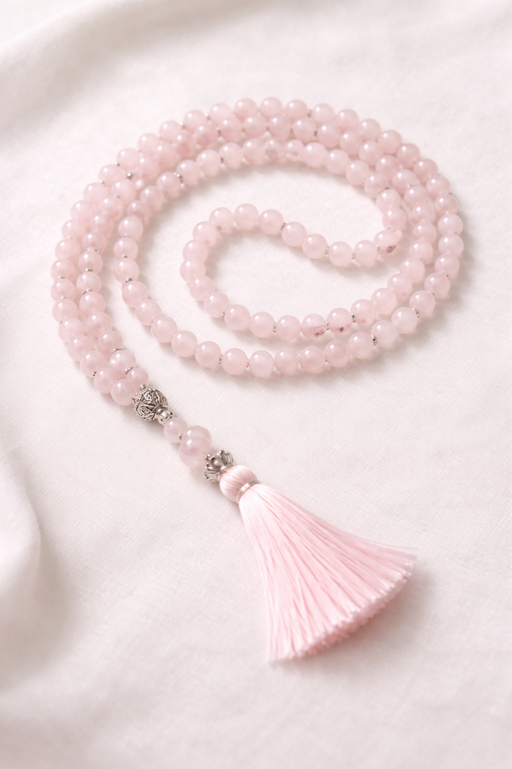 Collier Mala * 108 perles naturelles Quartz Rose naturelles