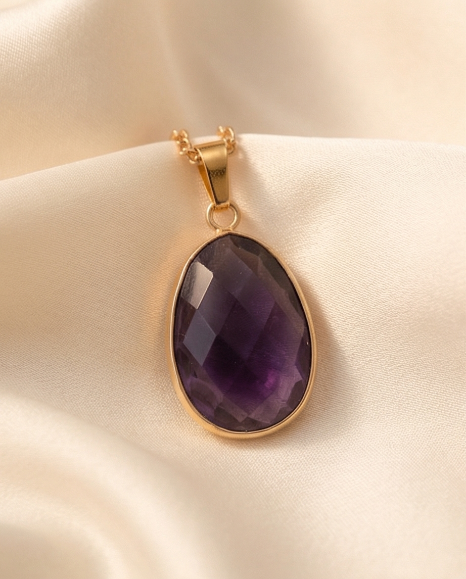 L’Améthyste est la pierre de l’intuition et de l’apaisement mental. Porter ce pendentif, c’est s’offrir une bulle de protection contre le stress quotidien.