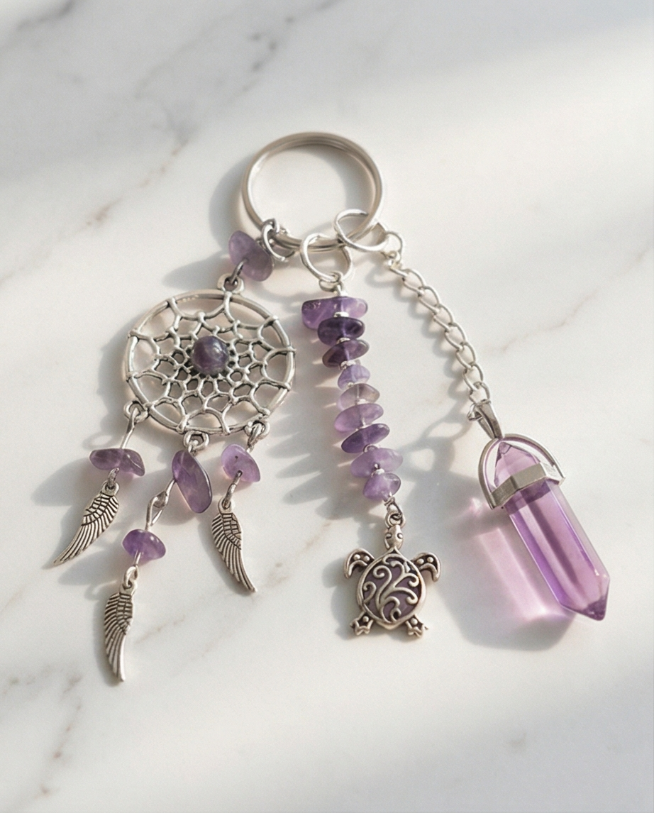 Un bijou raffiné pour vos clés ou votre sac. ✨L’alliance parfaite entre sérénité et style. Sublimez vos accessoires avec ce porte-clé attrape-rêve unique.