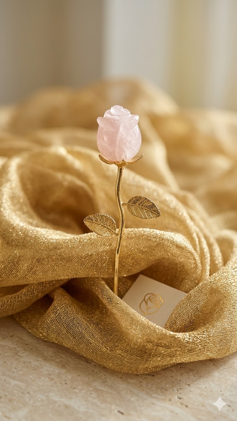 🌹 Rose Éternelle en Quartz Rose & Finition Dorée